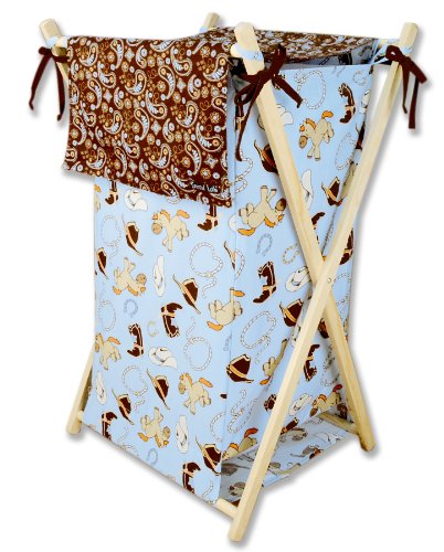 Trend Lab's Cowboy Baby Hamper Set is a decorative solution for quick clean up. The cowboy themed scatter print body with bandana print outer flap easily attaches to the collapsible pine wood frame. The fashionable color palette of powder blue, desert sand, chocolate brown, cream and touches of orange and dusk blue make this hamper suitable for any room of the house. Machine washable inner mesh liner is removable making the transport of laundry effortless. Assembled hamper measures 27" x 15" x 15". This hamper coordinates with the Cowboy Baby collection.Customer Reviews
